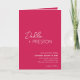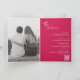 Faire-part de mariage pliée rose Viva Magenta moderne avec un design simple et minimal avec le nom de la mariée dans un script élégant et le nom du marié dans une police sans serif contemporaine. Vous trouverez ci-dessous, dans le coin inférieur droit, les détails de votre événement dans un agencement minimaliste. L'intérieur a votre photo préférée et vos détails supplémentaires, y compris un code QR optionnel (si vous préférez, le code QR peut être supprimé dans l'outil d'édition de conception). Le verso comporte deux sections facultatives supplémentaires pour plus d'informations.