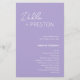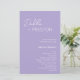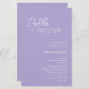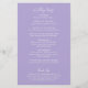 Moderner Lavendel / lila Hochzeitsprogramm mit einem einfachen und minimalen Design mit dem Namen der Braut in einem eleganten Drehbuch und dem Namen des Bräutigams in einem zeitgenössischen sans serif Schriftart. Unten unten rechts finden Sie Ihre Veranstaltungsdetails und die Reihenfolge der Zeremonie in einem minimalistischen Layout. Der Rücken hat Ihre Hochzeitsfeier und danke Ihnen Nachricht.