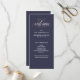 Diese einfachen, eleganten Hochzeitsprogramme sind mit einer Imitat-Rose Golddiamant und moderner Typografie auf einem dunkelblauen Hintergrund ausgestattet.