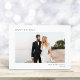 Elegante Weihnachtskarte mit einem minimalen modernen Design mit Ihrem Foto, und "Happy Holidays", Ihr Name und das Jahr in einfacher Typografie. Fügen Sie zwei zusätzliche Fotos auf der Rückseite, einen personalisierten Gruß an Familie und Freunde, und Ihre Vornamen.