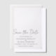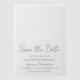 Minimal modernes Ankündigung Datum freihalten Vellum-Overlay mit "Save the Date" in einem schicken Skript und Ihren Namen, Hochzeitstag und Ort und andere Details in einfacher Typografie. Überlagern Sie es auf einem beliebten Foto oder auf einem unserer schlichten oder Foto-Karten-Hintergründe für eine ausgeklügelte und zeitlose Kombination (sehen Sie unsere Hintergründe für Vellum Overlay-Sammlungen oder schreiben Sie uns für die Links).