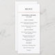 Ce menu de mariage moderne et élégant présente du texte noir sur un arrière - plan blanc, avec une bande d'or rose en haut.