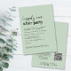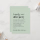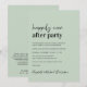 Minimal moderne Salbeigrün Hochzeitsempfehlung mit "Happily Ever After Party" in einer Mischung aus zeitgenössischer Schrift und mutiger trendiger Typografie. Personalisieren Sie Ihre Heiratsankündigung und Empfang-Einladung und fügen Sie Ihre Namen in einem signaturähnlichen Skript hinzu. Auf der Rückseite geben Sie die URL-Adresse Ihrer Hochzeitswebsite ein, um einen QR-Code für Ihre Gäste zu erstellen, um online zu scannen und alle Details zu erhalten.
