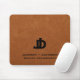 Mit diesem minimalistischen und modernen Mauspad mit stylishem, braunem Lederhintergrund und einem auffallenden schwarzen Monogramm-Logo mit zwei überlappenden Initialen in klassischer Blocktypografie lassen Sie Ihr Geschäftsimage noch höher. Passen Sie es mit Ihrem Firmennamen und Fachgebiet an, um eine berufliche Touch zu schaffen, die Vertrauen und Kompetenz ausstrahlt. Ideal für Finanzplaner, Vermögensverwaltungsfirmen und andere berufliche Unternehmen, die eine Erklärung abgeben möchten.