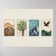 A calm and balanced set of minimalist nature illustrations featuring mountains, a tree, flowing wind, and a bird in flight. Designed in a simple block-style composition with earthy tones, this artwork captures the beauty and harmony of the natural world in a clean and modern way.
