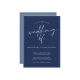 Minimal Navy Blue Script Einladung Hochzeit. Stilvoll beeindrucken Sie Ihre Hochzeitsgäste mit dieser trendigen, dunkelblauen Hochzeitseinladung, die auf einem atemberaubenden marineblauen Hintergrund ein wunderschönes, weißes Drehbuch enthält. Diese Einladung hat ein atemberaubendes königsblaues Design, mit modernen und minimalistischen Farbtönen, perfekt für Ihre einfache, trendige, minimalistische Hochzeit. Das minimale und stilvolle Layout hebt das weiße Skript hervor, kontrastiert mit dem auffallenden dunkelblauen Hintergrund. Diese Einladung Set den Ton für eine wunderschöne Hochzeitslandschaft, umgeben von blauen, weißen oder neutralen Blumen, und der passenden marineblauen oder marineblauen Hochzeitsdekoration. Eine perfekte Ergänzung zu jeder gedämpften oder schönen Mitternacht blauen Hochzeitsfeier. Das Sonntagkollektiv © von Rachel Hannah Gee
