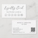 Moderne, schwarz-weiße typografische Loyalitätskarte mit einem einfachen und minimalen Design mit "Treuekarte" in einer eleganten Schriftzeichen-Typografie zusammen mit einem Herz im letzten Schlag. Auf der Rückseite finden Sie Ihre Kontaktdaten und optionalen QR-Code. Sie können den QR-Code entfernen und die Farben der Schriftart und des Hintergrunds im Entwurfstool ändern.