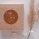 Minimalistisches Hochzeitsessen Probe Gunst-Aufkleber mit Typografie-Text, der "noch einen Tag" sagt. Der Hintergrund ist Terrakotta.