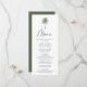 Tropical wedding menu featuring a single palm tree at the top of the design with "Menu" displayed in a modern black calligraphy script. Personalize the palm tree wedding menu with your names, wedding date, and menu below. The beach wedding menu reverses to a dark green background with space for additional text and photos. Choose to have the menu printed, digital download, or both! Designed to coordinate with our Minimal Palm Tree wedding collection.