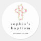 Minimal rosa Florals Cross Name Datum Girl Taufe Runder Aufkleber
