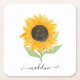 Minimal Rustic Sunflower Personalized Name Script Square Paper Coaster