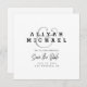 Diese moderne und minimalistische Save the Date Einladung ist eine ausgezeichnete Möglichkeit, Ihren großen Tag mit einer Touch von Eleganz zu verkünden. Das schlichte und dennoch anspruchsvolle Design bietet klassische Schrift- und Schrifttypografie vor einem unberührten, weißen Hintergrund, der mit dem eigenen Text personalisiert werden kann. Der QR-Code auf der Rückseite der Karte ermöglicht es Ihren Gästen, schnell und einfach auf Ihre Hochzeitswebsite zuzugreifen, wo sie UAWG und weitere Informationen über Ihre bevorstehende Feier finden können. Mit dieser Einladung können Sie Ihre Gäste auf stilvolle und praktische Weise in einen besonderen Tag einführen.