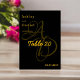 Die elegante Tischnummer in Schwarz und Gold eignet sich perfekt für eine moderne Hochzeit und bietet eine elegante Goldkalligraphie auf schwarzem Hintergrund.