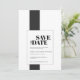 Die elegante und moderne Minimal Black und White Save the Date-Karte zeichnet sich durch ein elegantes monochromatisches Design aus, das sich perfekt für Paare eignet, die Einfachheit und Eleganz schätzen. Die zeitlose Schwarz-Weiß-Palette ergänzt jedes Hochzeitsthema und behalte den Fokus auf Ihren besonderen Tag. Mit seinen klaren Linien und minimaler Typografie besticht dieses Design durch Eleganz und Raffinesse und ist somit eine ideale Wahl für zeitgenössische Hochzeiten. Personalisieren Sie Ihre Daten, um sie einzigartig zu machen.