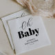 Moderne Babydusche-Party-Servietten mit schlichtem, weißem Hintergrund, dem Titel "oh baby" und einer eleganten Vorlage, die leicht zu personalisieren ist.