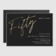 Moderne minimalistische 50. Geburtstagsfeier Einladung mit stilvollen Imitate Gold-Folie Nummer handgeschriebene Drehbuch Fifty und Ihre Party-Details in klassischen Serif-Schriftart auf schwarzem Hintergrund, einfach und elegant, große Überraschung Erwachsenengeburteinladung für Männer und Frauen.