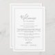 Diese minimalen silbernen Begrüßungsbriefe und Reisekarten sind perfekt für eine einfache Hochzeit. Das moderne romantische Design besticht durch klassische silbergraue und weiße Typografie gepaart mit einer rustikalen und eleganten Kalligraphie mit Vintagem handgeschriebenem Stil. Anpassbar in jeder Farbe. Behalt das Design einfach und elegant, wie es ist, oder personalisiere es durch Hinzufügen von eigenen Grafiken und Kunstwerken. Auf der Vorderseite der Karte befindet sich ein Begrüßungsschreiben, auf der Rückseite der Karte befindet sich der Hochzeitstag. Diese Noten sind ideal für Hochzeiten in Urlaubsort und Begrüßungstaschen für Hotelgäste.