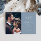 Diese eleganten, modernen Hochzeitskarten zeichnen sich durch ein schlichtes, blau-weißes Textdesign aus, das minimalistisch ist und zwei Ihrer bevorzugten persönlichen Fotos aufweist. Fügen Sie Ihre Initialen oder Monogramme hinzu, um sie komplett zu Ihrem eigenen zu machen.
