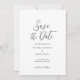 Islamischer Moslem Save the Date Karte. Weißer Farbhintergrund mit minimaler schwarzer Schriftzeichen. Klassisch. Sauber. Sie können alle Informationen, die mithilfe des Entwurfstools geschrieben wurden, anpassen. Essentials für Hochzeitskunst. Nikah Zeremonie, Verlobung Ankündigung Erinnerung Nachricht für die Gäste. Wenden Sie sich an den Designer, um etwaige Änderungen am Produkt zu erfahren.