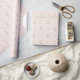 A minimal wildflower pattern featuring delicate pink blooms, leafy stems, and subtle dot accents on a soft blush background.