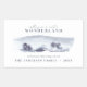 Wandern in einem Winterwunderland Weihnachtsfeiertag Gunst oder Postaufkleber Design. Schöne moderne abstrakte Aquarellmalerei. Teil einer Ferienkollektion. Die Hintergrundfarbe kann angepasst werden.