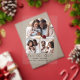 Diese schlichte, minimalistische Save the Date-Karte verfügt über einen 3-Foto-Collage-Bogen über den Worten "Save the Date" in elegantem schwarzen Handschrift, gefolgt von den Namen der Ehepaare, dem Hochzeitstag und der Stadt in serifenlosen Sans-Schriftart auf einem klaren Hintergrund.