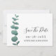 Minimale Eukalyptus-Hochzeit Sichern Sie die Datum Save The Date