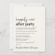 Minimal moderne helle Creme Hochzeitsankündigung und Empfang Einladung. Die Vorderseite zeigt "Happily Ever After Party" in einer Mischung aus zeitgenössischer Schrift und mutiger trendiger Typografie. Personalisieren Sie Ihre Nachricht und Einladung detaillierter und fügen Sie Ihre Namen in ein signaturähnliches Skript ein. Auf der Rückseite finden Sie Ihr Foto, Ihre Vornamen und Ihr Hochzeitstermin.
