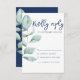 Minimale moderne Eukalyptus Navy Blue Wedding RSVP