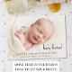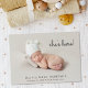 Minimale Geburtsankündigung von Fotos, um die Ankunft Ihres Babys zu Familie und Freunden anzukündigen. Das Foto Ihres Neugeborenen füllt die Vorderseite und wird mit "sie ist hier!" "Er ist hier!" oder "Ich bin hier!" in einer zeitgenössischen Schrift überlagert (Sie können diesen Text je nach Foto in einen anderen Bereich auf der Karte verschieben, indem Sie "Design-Tool bearbeiten" auswählen). Geben Sie unten seinen Namen, das Ankunftsdatum und die Geburtsdaten ein. Auf der anderen Seite fügen Sie vier weitere Fotos hinzu, eine "Begrüßungsbotschaft" und die Vornamen der Eltern und Geschwister.