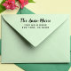 Stilvolle Script-Rücksendeadresse Selbstfarbige Briefmarke Moderne Rücksendeadresse Briefmarke mit Ihrem Namen in einem stilvollen Skript und Ihre Adresse in einfacher Typografie. Rett Zeit und Mühe, indem du deine Rücksendeadresse mühelos personalisierst. Ideal für Hochzeitseinladungen, Party-Ankündigungen, den Briefwechsel im Alltag und Geschäftsmailings. Julie Horton Designs