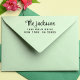 Stilvolle Script-Rücksendeadresse Selbstfarbige Briefmarke Moderne Rücksendeadresse Briefmarke mit Ihrem Namen in einem stilvollen Skript und Ihre Adresse in einfacher Typografie. Rett Zeit und Mühe, indem du deine Rücksendeadresse mühelos personalisierst. Ideal für Hochzeitseinladungen, Party-Ankündigungen, den Briefwechsel im Alltag und Geschäftsmailings. Julie Horton Designs