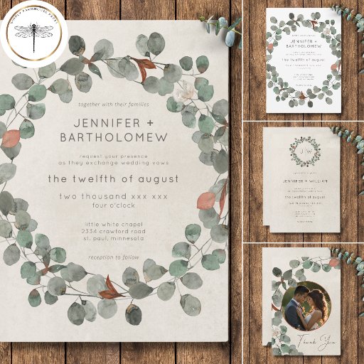 Dieses Design zeichnet sich durch ein einfaches, weiches Aquarell-Grün und Rost-Eukalyptus-Spray auf Ihrem Schreibwarenhintergrund aus. Es ist zart, elegant und schlicht. Erstellt von der einfachen Farmhouse Press.