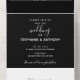 Diese mit Monogramm Hochzeitseinladung strahlt Eleganz und Einfachheit mit minimalistischem Design aus. Oben nehmen die Initialen des Paares die zentrale Bühne, schön verwoben und mit einem zarten Vektorzweig geschmückt, was der Gesamtkomposition eine Touch der Natur hinzufügt. Die Verwendung eines schwarzen Hintergrunds und eines weißen Textes schafft einen auffallenden Kontrast, indem die Formalität des Ereignisses betont und ein Gefühl der Raffinesse hinzugefügt wird. Der in der Einladung verwendete Kalligraphie-Schriftart verleiht der Einladung eine anmutige Handschrift und verleiht der Einladung eine persönliche und intime Touch. Zusammen mit dem serifenlosen Sans-Schriftart schafft es ein harmonisches Gleichgewicht zwischen klassischen und modernen Elementen, das sowohl den traditionellen als auch den modernen Geschmack anzieht. Die durchdachte Einfügung einer separaten RSVP-Karte in weiß mit schwarzem Text ermöglicht es den Gästen, einfach auf die Einladung zu reagieren. Diese Auswahl gewährleistet die praktische Durchführung und bewahrt gleichzeitig die ästhetische Kohärenz der Suite. Zusammenfassend lässt sich sagen, dass diese mit Monogramm Einladung zu einer Hochzeit ein Meisterwerk von schlichter Schönheit ist, das ein aufwändiges Monogramm-Design, minimalistisches Schwarz-Weiß-Schema und eine perfekte Mischung aus Kalligraphie und Sans Serif-Schriftart vereint, die alle zu einer verfeinerten und unvergesslichen Hochzeitsfeier vereinen.