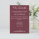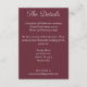 Diese "must-have" Detailkarte enthält den Titel in einem lebendigen Skript und Ihre Details in einem modernen Serif-Schriftart. Dies ist der perfekte Ort, um Unterkünfte und andere relevante Hochzeitsinformationen zu beachten. Auf der Rückseite finden Sie Ihr Hochzeitstag.