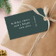 Ein stilvolles, modernes Geschenkschild mit klassischer typografischer Adresse mit Trennlinie und Familienname mit vertikaler Textrichtung in Weiß. Das Design hat eine dunkelwaldgrüne Farbe und ist in einem skandinavischen "skandinavischen" Design-Stil. Der Gruß und der Name lassen sich einfach für ein einzigartiges Design anpassen. Ein trendiges, minimalistisches und zeitgenössisches Design, das sich in dieser Ferienzeit auszeichnet!