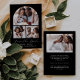 Diese schlichte, minimalistische Save the Date-Karte verfügt über einen 3-Foto-Collage-Bogen über den Worten "Save the Date" in eleganter Schrift, gefolgt von den Namen der Ehepaare, dem Hochzeitstag und der Stadt in serifenlosen Sans-Schriftart auf schwarzem Hintergrund. Fügen Sie ein viertes, horizontales Foto und eine detailliertere Meldung auf der Rückseite hinzu.