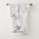 Ein einzigartiges niedliches, elegantes Handtuch aus schwarz, weiß und grau Marmor. Passen Sie das Monogramm und den Namen des Skripts an.