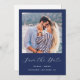 Minimaler Foto Script Navy Blue QR Code Save The Date