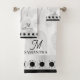 Ein einzigartiges hübsches, elegantes Handtuch aus schwarz, weiß, silber und grau. Passen Sie das Monogramm und den Namen des Skripts an.