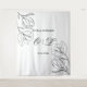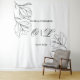 Eine romantische und elegante Hochzeitskulisse mit minimalistischem Design mit zarten Blumenbildern und den Namen der Paare und dem Hochzeitsdatum, elegant in schwarz auf weißem Hintergrund geschrieben.
