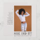 Foto Ankündigung und fügen Sie Details auf die Rückseite für eine Einladung zu feiern. Öffnen Sie den Volleditor, um Fotos zu entmasken und zu verschieben oder einen Schwarz-Weiß-Filter hinzuzufügen/zu entfernen usw.