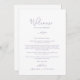Diese minimalen lila Begrüßungskarten aus Blättern sind perfekt für eine Hochzeit. Die Silhouette ist schlicht und grün, mit einem hellen Lavendel lila und klassisch minimalistisch. Auf der Vorderseite der Karte befindet sich ein Begrüßungsschreiben, auf der Rückseite der Karte befindet sich der Hochzeitstag. Diese Noten sind ideal für Hochzeiten in Urlaubsort und Begrüßungstaschen für Hotelgäste.