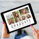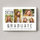 Minimal moderne Abschluss-Ankündigung für ihn oder sie mit einer 5 Foto Collage und "Graduate" geschrieben unten in großen Hauptstädte Buchstaben. Fügen Sie das Unterrichtsjahr, den Namen und die Schule oder Universität in einfacher Typografie hinzu.