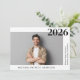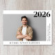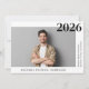 Minimale, moderne Ankündigung des Abschlusses mit dem Foto des Absolventen und dem Namen, der Schule und dem Unterrichtsjahr in einfacher Typografie.