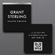 Mit dieser eleganten, quadratischen Visitenkarte mit weißer Typografie auf schwarzem Hintergrund, die durch einen raffinierten Silberstreifen hervorgehoben wird, machen Sie einen kühlen ersten Eindruck. Mit integriertem QR-Code und minimalistischem Layout ist es für Profis gedacht, die sowohl Stil als auch Funktionalität schätzen.