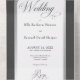 MIT ODER OHNE QR-CODE ODER ABENDESWÄHLUNGSOPTIONEN. Dieses Design zeichnet sich durch einen schwarzen Holzkohle-Hintergrund mit einem weißen Textbereich aus, der in Imitaten auf Silberfolie gerahmt ist. Ein Monogramm mit dem ersten Auftakt der Braut und des Bräutigams auf der Außentafel vervollständigt es. Erstellt von der einfachen Farmhouse Press.