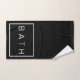 Einfach gestaltetes Handtuch mit schwarzem Hintergrund und das Wort "Bad" in weißer Kleinbuchstabe und weißer Rahmen auf der unteren Hälfte. Anpassen an jede Farbe.