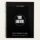 Ein schwarz-weißer Planer. Ersetzen Sie das Bild in der Mitte durch Ihr eigenes Bild oder Firmenlogo. Personalisieren Sie den Text mit dem Jahr, Ihrem Firmenlogo und der Website.