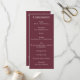 Eine schicke und moderne Programmkarte mit samtig pflaumendem Hintergrund. Der Titel erscheint in einem lebendigen Skript und Details erscheinen in einem zurückhaltenden und ausgeklügelten Serif-Schriftart.